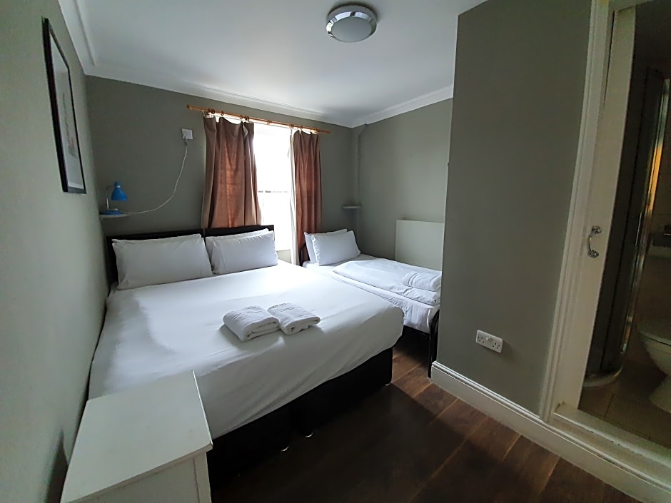5 person room (5 single beds) is 151 square feet and includes either 3 single beds 80-130 width or a double bed 131-150 width plus hairdryer and tea and coffee making facilities .